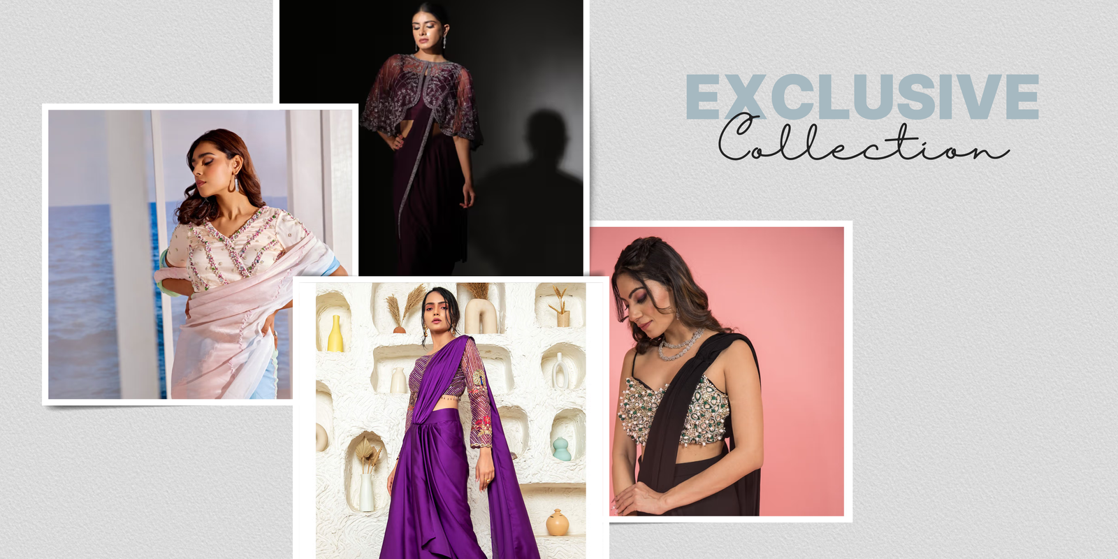 ₹3,940.00 Incl GST.Vaani Pink Pre-Draped Saree with Belt and Stitched Blouse
