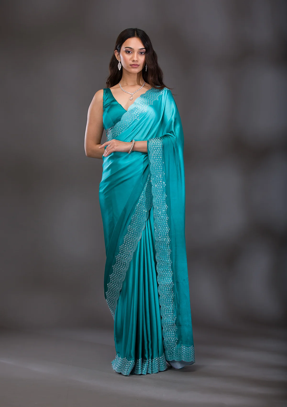 Sea Green Swarovski Satin Saree
